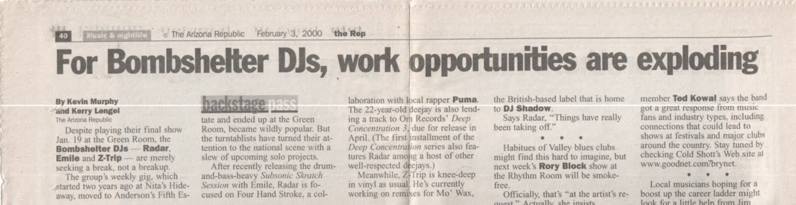 I’ve spent time waxing nostalgic on this site about the Bombshelter DJs, the three-man collective (Z-Trip, Radar and Emile) that I was fortunate enough to see perform regularly in the Tempe/Phoenix area during the mid to late ’90s. They are, without a doubt, some of my fondest live music memories. Those guys were open-minded and forward-thinking, proving you didn’t have to be one one coast or the other to start – and sustain – a movement.